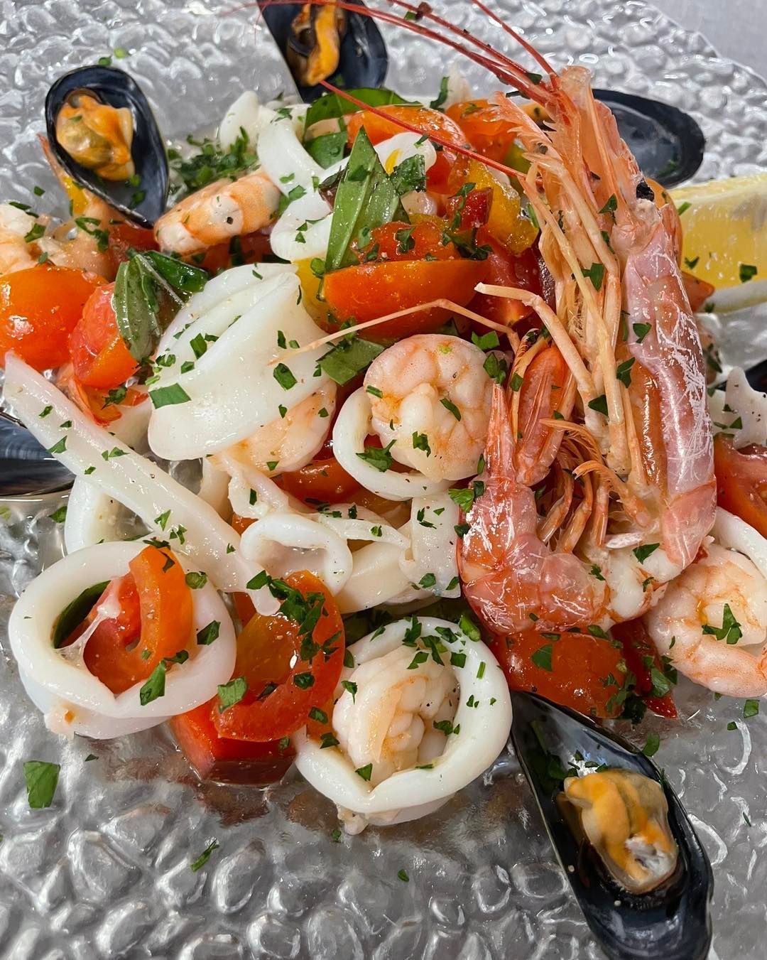 Non mancano i primi piatti come risotti e paste fresche abbinate a frutti di mare e crostacei, sapientemente bilanciati da salse leggere e profumi mediterranei. I secondi piatti, invece, spaziano dalle grigliate di pesce misto ai filetti di pescato del giorno, cotti con tecniche che rispettano la delicatezza delle carni. Ogni piatto è un omaggio al mare, pensato per regalare un'esperienza gastronomica autentica e indimenticabile.